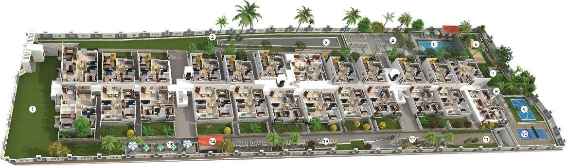 - All interior wall faces are provided with paints with low VOC products of Asian paints or equivalent make